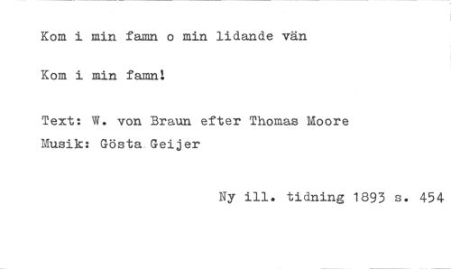 //// Kom i min famn o min lidande vän Kom i min famn: //// Text: W. von Braun efter Thomas Moore Musik: Gösta Geijer //// Ny ill. tidning 1893 s. 454 ////