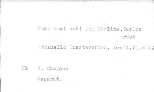 //// Kom; rom: ack; kom Panlina,Carlos //// röst //// Stornello Trasteverino. Duett.(T.o Sj //// Mk F. Campana //// Separat. ////