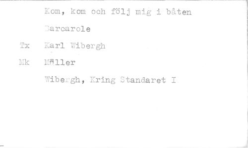 //// Kom, kom och följ mig i båten 3arcarole //// Tx Karl. Wibergh //// Mk MfAller //// Wibergh, Kring Standaret 1 ////