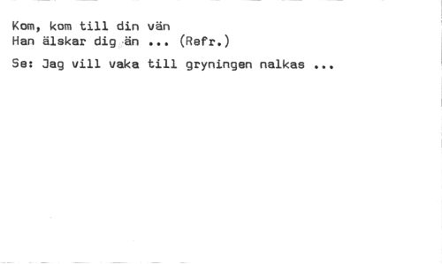 //// Kom, kom till, din vän //// Han älskar dig ,än (Refr.) //// Se: Jag vill vaka till gryningen nalkas ... ////