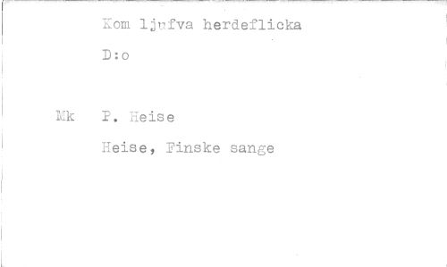 //// Kom ljlifva herdeflicka D:o //// lk P. Heise //// Heise, Finske sangs ////