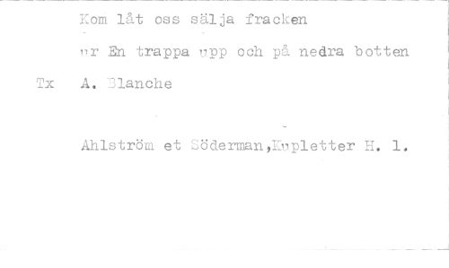 //// Kom låt oss sälja fracken //// ur En trappa upp och på nedra botten Tx A. 7:lanche //// Ahlström et Söderman'Kupletter H. 1. ////