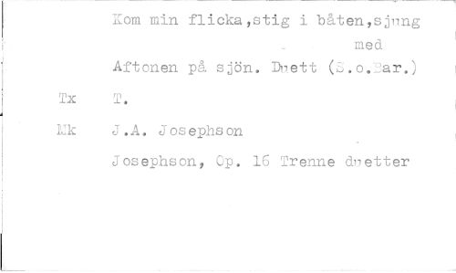 //// Kom min flicka,stig i båten,sjnng //// med //// Aftonen på sjön. Dnett ( .o.2ar. //// Tx T. //// Lik J.A. Josephson //// Josephson, Op. 16 Trenne dl7etter ////