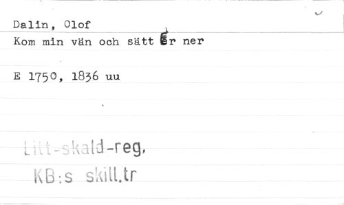 //// Dalin, Olof //// Kom min vän och sätt er ner //// E 1750, 1836 uu //// Kl -skald -reg, //// KB:_s ////
