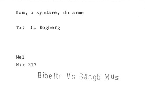 //// Kom, o syndare, du arme Tx: C. Rogberg //// Mel //// N:r 217 //// Bibeltr Vs Sängb Mus ////