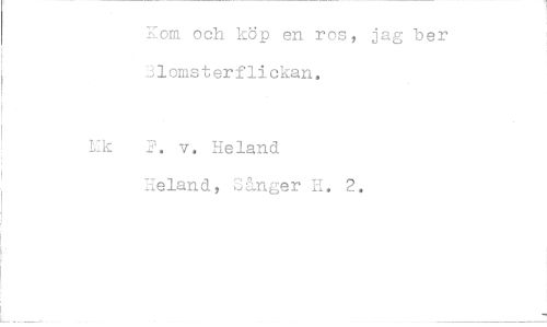 //// Kom och köp en ros, jag ber 3lomsterflickan. //// Lik F. v. Heland //// Heland, Sånger H. 2. ////