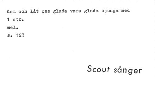 //// Kom och låt oss glada vara glada sjunga med //// 1 str. mel. //// s. 123 //// Scout sånger ////