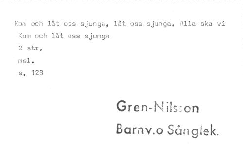 //// Kom och låt oss sjunga, låt oss sjunga. Alla ska vi Kom och låt oss sjunga //// 2 str, //// mel. //// s. 128 //// Gren-Nilsson //// Barnv.o Sång ek. ////