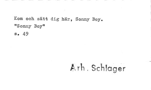 //// Kom och sätt dig här, Sonny Boy. "Sonny Boy" //// s. 49 //// A rh Schlager ////