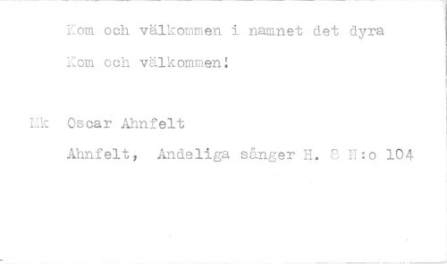 //// rom och välkommen i namnet det dyra :lom och välkommen! //// Lk Oscar Ahnfelt //// Ahnfelt, Andeliga sånger H. E 1:o 104 ////