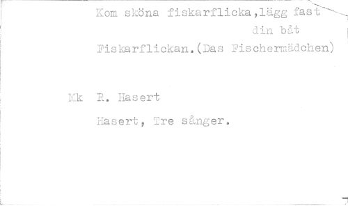 //// Kom sköna fiskarflicka,lägg fast--- //// din båt //// Fiskarflickan. (Das Fischermädchen) //// Mk R. Hasert //// Hasert, Tre sånger. ////