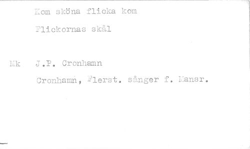 //// —om sköna flicka kom Flickornas skål //// Trk J.P. Cronhamn //// Cronhamn, 21erst. sånger f. Lansr. ////