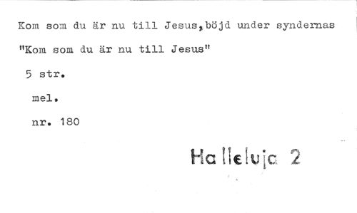 //// Kom som du är nu till Jesusyböjd under syndernas "Kom som du är nu till Jesus" //// 5 str. //// mel. //// nr. 180 //// Ha tie uic 2 ////