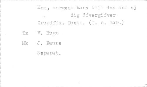 //// rom, sorgens barn till den som ej dig öfvergifver Ornsifix. Duett. (T. o. 3ar.) //// Tx V. Hugo //// J //// Lik J. Faure //// Separat. ////