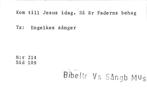 //// Kom till Jesus idag. Så är Faderns behag Tx: Engelkes sånger //// N:r 214 //// Sid 109 //// Ribe 1 tr Vs Sångb Mus ////