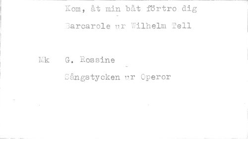 //// Kom, åt min båt förtro dig 3arcarole pr Wilhelm Tell //// Mk G. llossine //// Tångstycken tlr Operor ////