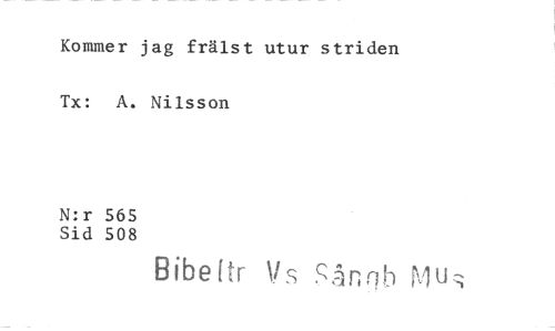 //// Kommer jag frälst utur striden Tx: A. Nilsson //// N:r 565 //// Sid SO8 //// Bibeftr !is Sång.) 1Us ////