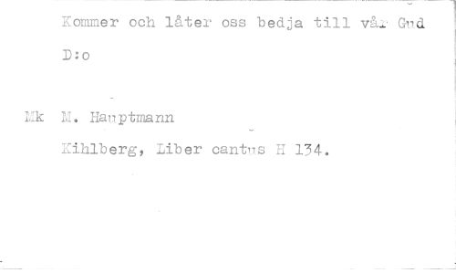 //// Kommer och låter oss bedja till vå-•Gnd D:o //// Lk 1. Hanptmann //// Kiihlberg, Liber cantns 134. ////