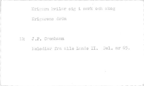 //// Krigarn hyllar sig i mark och skog Krigarens dröm //// Lic J ,P. Cronhanan //// helodier fra alle Lands II. Del. nr 65. ////