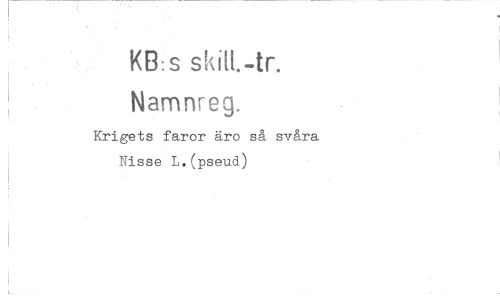 //// KB: s skilt.-tr. //// Namnreg. //// Krigets faror äro så svåra Nisse L.(pseud) ////