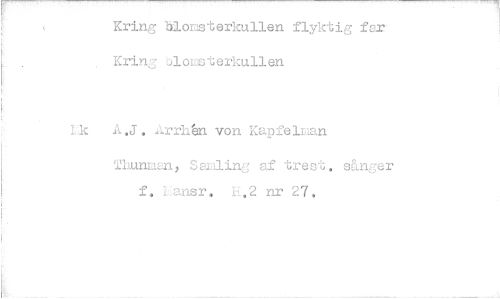 //// Kring blonsterkullen flyktig far Krin27 blomsterkullen //// U A,J. Arran von Kapfelman //// Thunmaa, Samling af frost. sängar f, 1Jansr. H.2 nr 27. ////