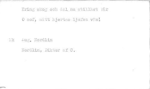 //// Kring skog och dal nu stillhet rår. 0 sof, mitt hjertas ljufva vän! //// Uc Lug. Nordlin //// Nordlin, Dikter -af C. ////