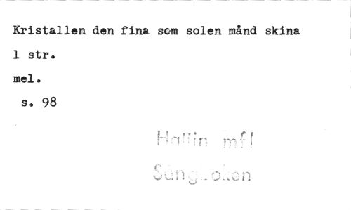 //// Kristallen den fina som solen månd skina 1 str. //// mel. //// s. 98 //// • //// h C..1 n ////