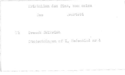 //// Kristallen den fina, som solen. //// D:o .,-vartett //// 1:1c Svensk folkvisa //// StudentsDiuen af 1. Eedenblad nr 4 ////
