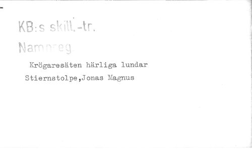 //// KB:s shM-tr //// Krögaresäten härliga lundar Stiernstolpe,Jonas Magnus ////