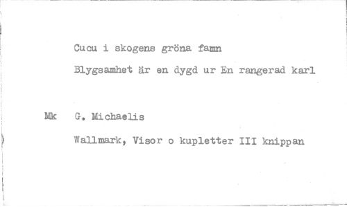 //// Cucu i skogens gröna famn //// Blygsamhet är en dygd ur En rangerad karl //// Mk G. Michaelis //// Wallmark, Visor o kupletter III knippan ////