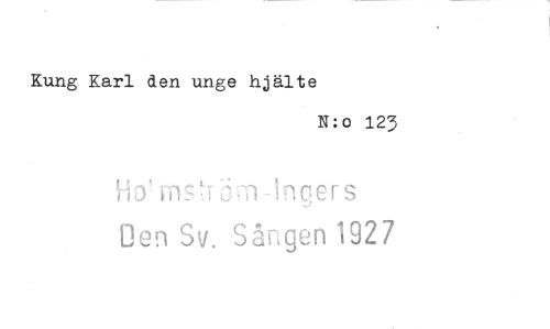 //// Kung Karl den unge hjälte //// N:o 123 //// H D' iTIS i :alnoers //// Den Sv. Sången 1927 ////