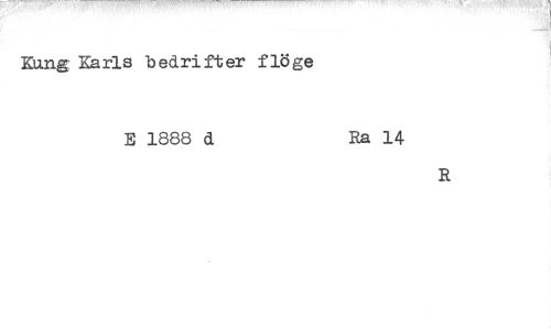//// Kung Karls bedrifter flö ge //// E 1888 d Ra 14 //// R ////