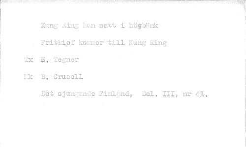 //// Kun Aing han satt i högbänk //// • Frithiof kommer till Kund Ring //// Wx B. Tegner- //// Yk B. Crusell //// Det sjuncande Finland, Del. III> nr 41. ////