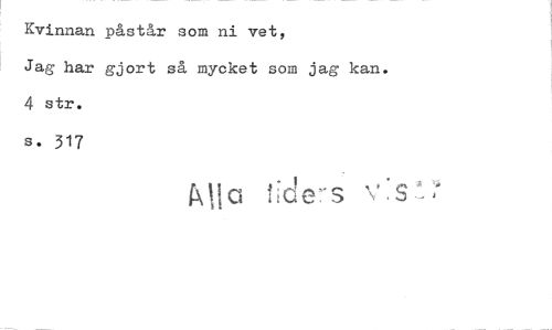 //// Kvinnan påstår som ni vet, //// Jag har gjort så mycket som jag kan. 4 str. //// s. 317 //// Mia t:de-s- ////