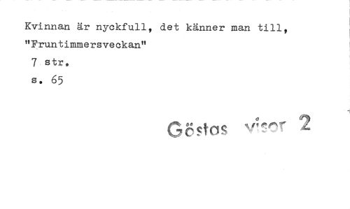 //// Kvinnan är nyckfull, det känner man till, "Fruntimmersveckan" //// 7 stx.. //// s. 65 //// GE5teiR ".""" ////