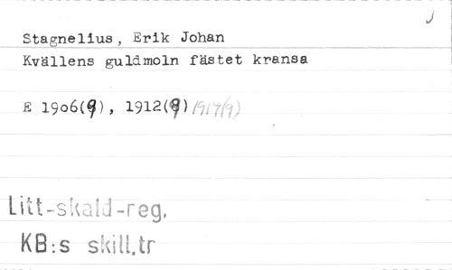 //// Stagnelius, Erik Johan //// Kvällens guldmoln fästet kransa //// E 1906(9), 1912(v), //// KB:s skatt- ////