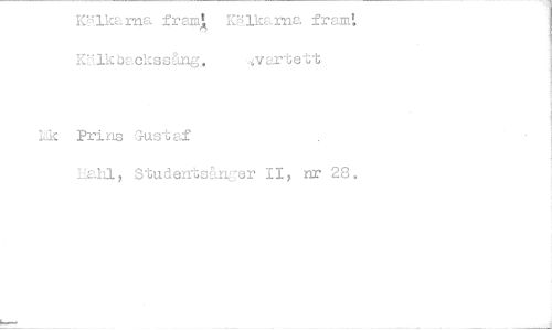 //// Kika rna frun i KUkarna fram: Kälk backs Sång, v art, e tt, //// Lk Prins Gu st af //// Hala Stu dentsäng er II, nr 28. ////