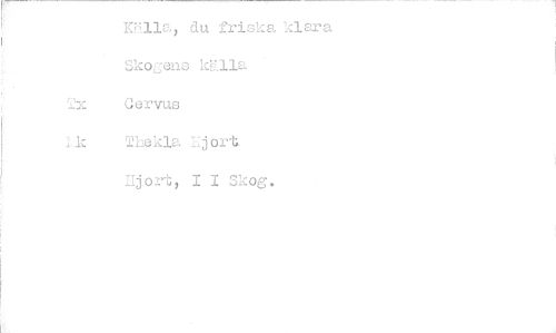 //// :Mila; du friska klara Sizosjens k.P.112, //// Cervus //// L..k Tekla Ej ort, //// Ejort, 1 1 Skog. ////