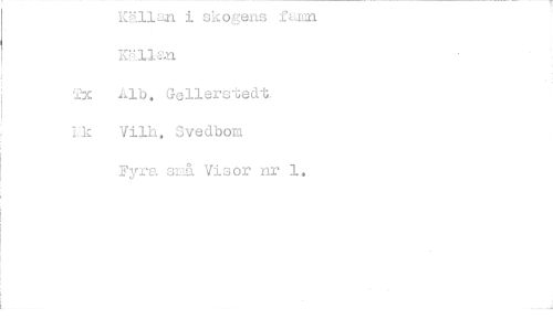 //// 011an i skogens famn KUIan //// Alb. Gellerstedt //// 1k V1111, Syedbom //// Fyra snå Visor nr 1. ////