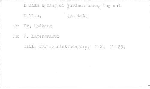 //// Kgllan sprang ur jordens barm, log mot, • KUllan. ' ,:.M1rtett• //// dx Pr. Iedberg //// I2ic W. Lacercruntz //// Bibi. för =0,n:,.rtettsLnare. H 2. Ur 25. ////