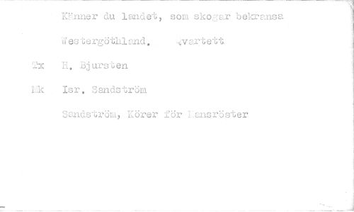 //// Knnner du landet, som skogar bekransa Westergötbland. lmrtett //// h. Bjursten //// Lk isr. Sandström //// Sondström, Körer för L.ansröster ////