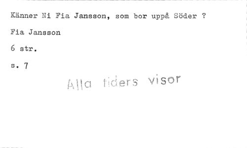//// Känner Ni Fia Jansson, som bor uppå Söder ? Fia Jansson //// 6 str, //// 5. 7 //// AUCI tiders visor ////