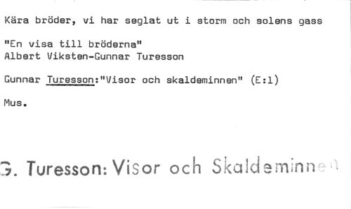 //// Kära bröder, vi har seglat ut i storm och solens gass //// "En visa till bröderna" //// Albert Viksten-Gunnar Turesson //// Gunnar Turesson:"Visor och skaldeminnen" (E:1) //// Mus. //// 3. Turesson: Visor och Skaidemån ////