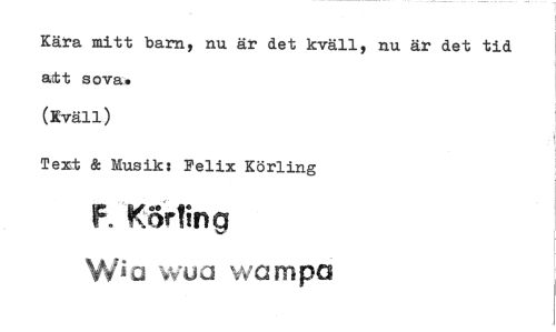 //// Kära mitt barn, nu är det kväll, nu är det tid att sova. //// (Kväll) //// Text & Musik: Felix Körling //// Fe K5rting //// wua wampa ////