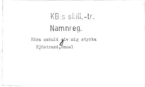 //// KB:s skitt.-tr. //// Narnnreq. //// i //// Kära oskuld 4 v mig styrka Sjöstrand, muel ////