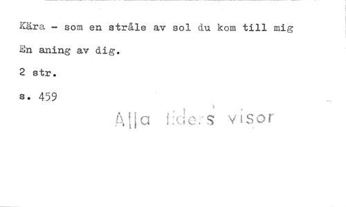 //// Kära - som en stråle av sol du kom till mig En aning av dig. //// 2 str. //// s. 459 //// i //// Alla visor ////