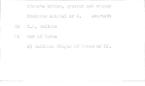 //// Käraste 'bröder, systrvr och irl.nner Frednans istel nr 6. vaitett //// Bellman //// lik arr af ITasus //// 25 3ellmans3 Ser a sus nr 22. ////
