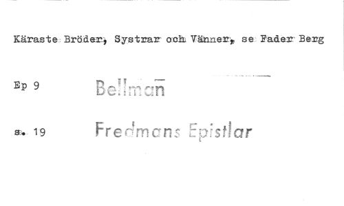 //// Käraste. Brö:der-, Systrar. mab Väknearr se Fader' Berg //// Ep 9 A — //// Bc-,1 rr n //// Et. 19 Frer4mcn EpstJar ////