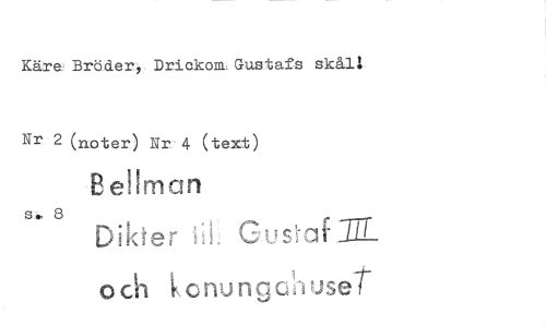//// Käre Brölder: Driekoni: Gustafs skål', //// Nr 2 (noter) Nr 4 (text) //// Bellman //// e, 8 Dikter Cucafil //// 0cn konung oh uset ////