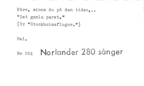 //// Kåre, minns du på den tiden". "Det gamla paret." //// (Ur "Stockholmsflugor.") //// Mel. //// Nr 224 Norlander 280 sånger ////